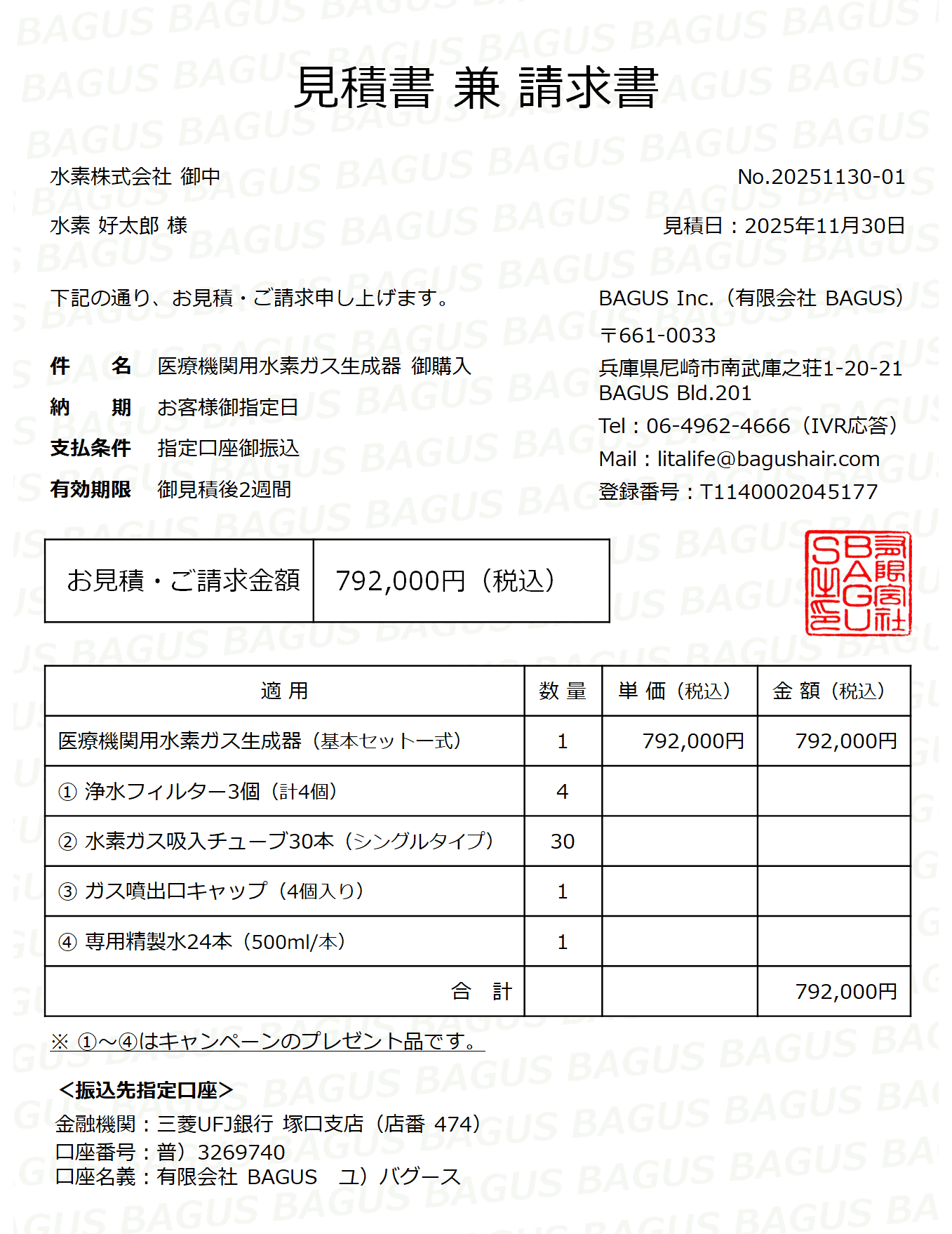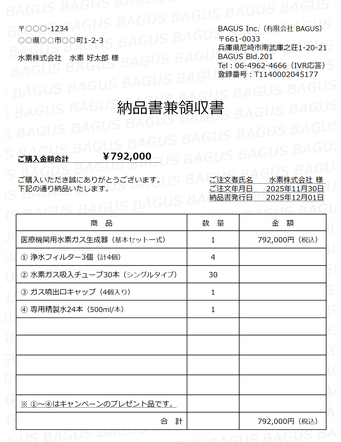 一般財団法人日本共同購買機構の正規販売代理店(BAGUS Inc.)から発行致します。